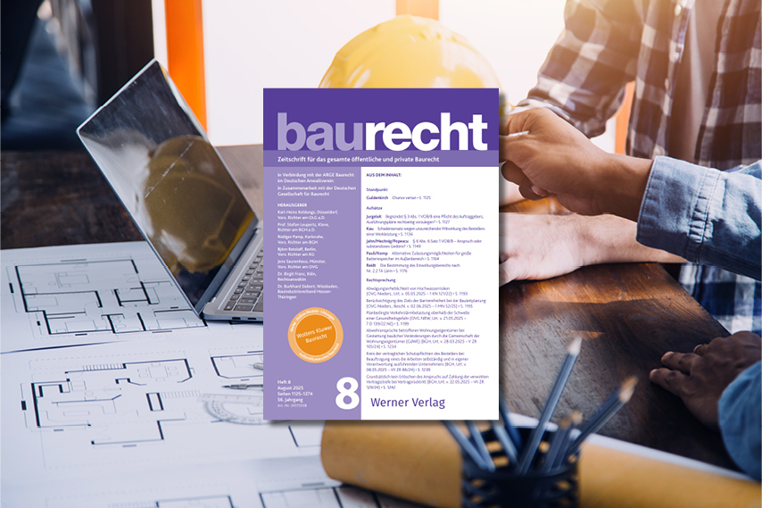 Über 50 Jahre »baurecht« stehen für Top-Informationen von Deutschlands führenden Baurechtlern. Sie ist die führende Zeitschrift für das gesamte öffentliche und private Baurecht und die einzige Zeitschrift, die alle bundesweit bekannten Baurechtler unter einem Dach versammelt: als Herausgeber, als ständige Mitarbeiter und/oder als Autoren.