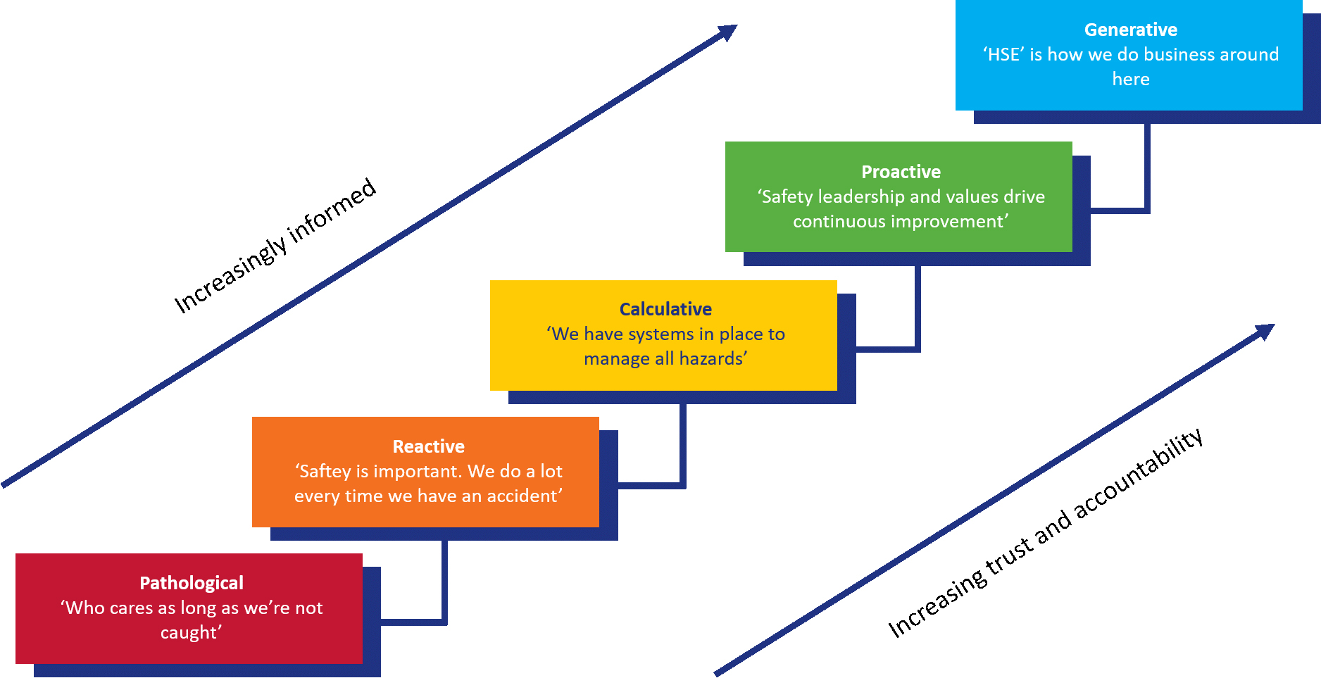 When talking to clients or partners within our network it would be fair to say that we encounter organizations and individuals with different motivations for their interest in bowtie software and the bowtie methodology. Often this motivation is related to the internal goals of an organization which then again relate to a certain maturity level on the safety culture ladder (see Figure 1).