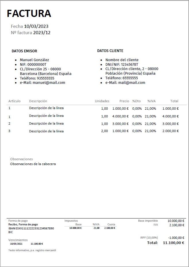 Ejemplo factura autónomo