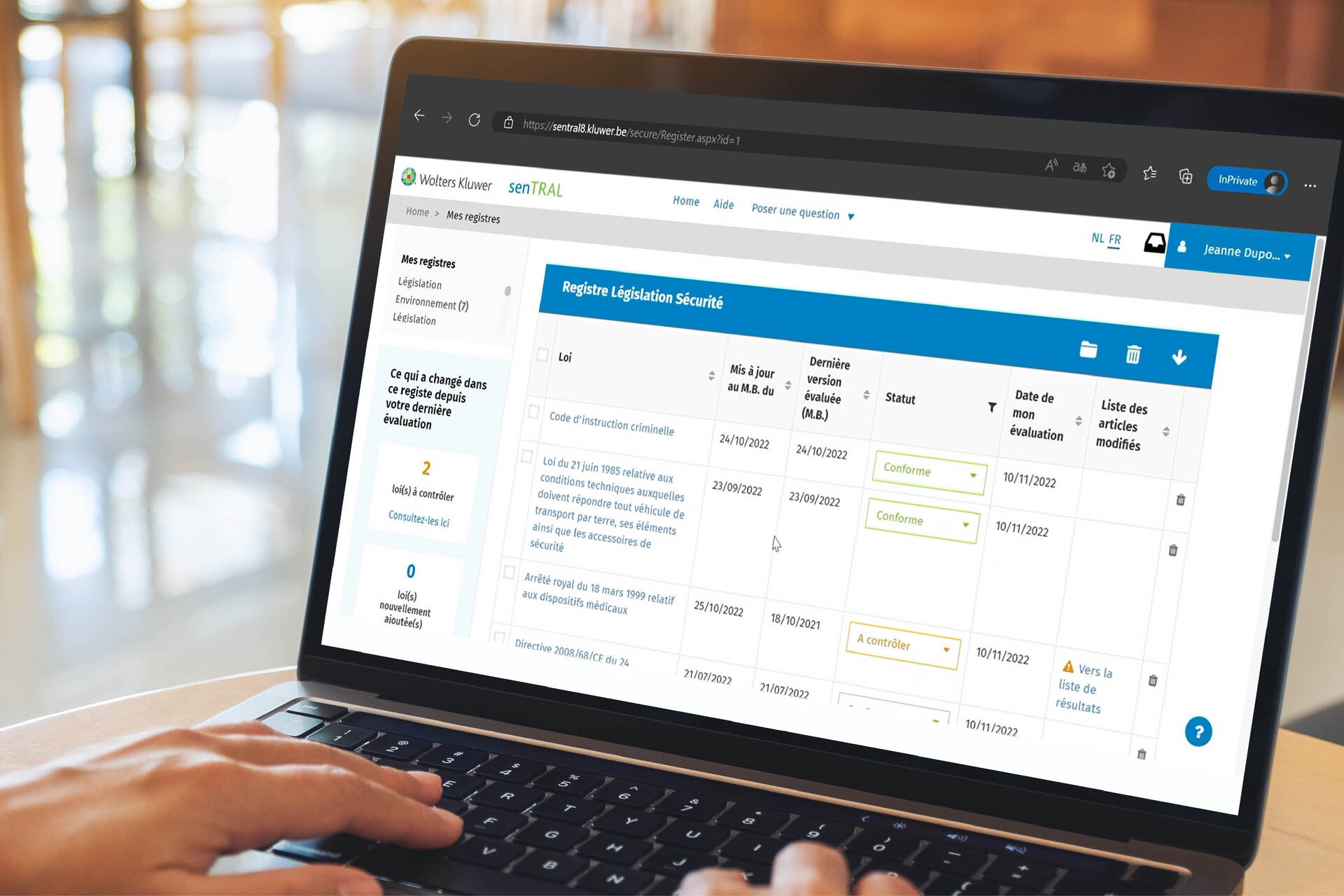 Grâce au registre législatif, vous respectez plus facilement la législation. Vous voyez directement les lois auxquelles votre entreprise doit se conformer et les actions à mener pour être ou rester en conformité.